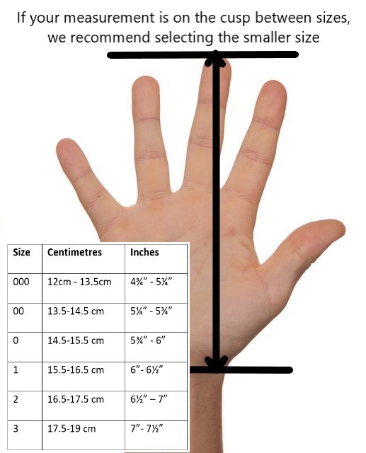 Leviero grips come in a range of sizes to suit the hands of any gymnast. To determine what size grips you will need for any of our dowel grips, please measure from the tip of the middle finger to the bottom of the palm. Look this measurement up on the Leviero sizing chart to select your size. For more information on grip sizing and different styles of grips, please read our FAQ section.
